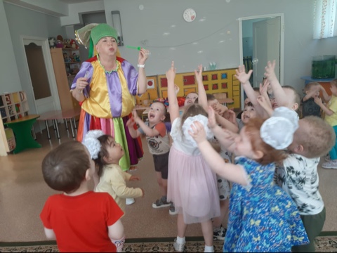 Бүлдіршіндер көңілді ойындарға белсенді қатысты, би биледі, ән айтты және мол позитивті эмоциялар алды.