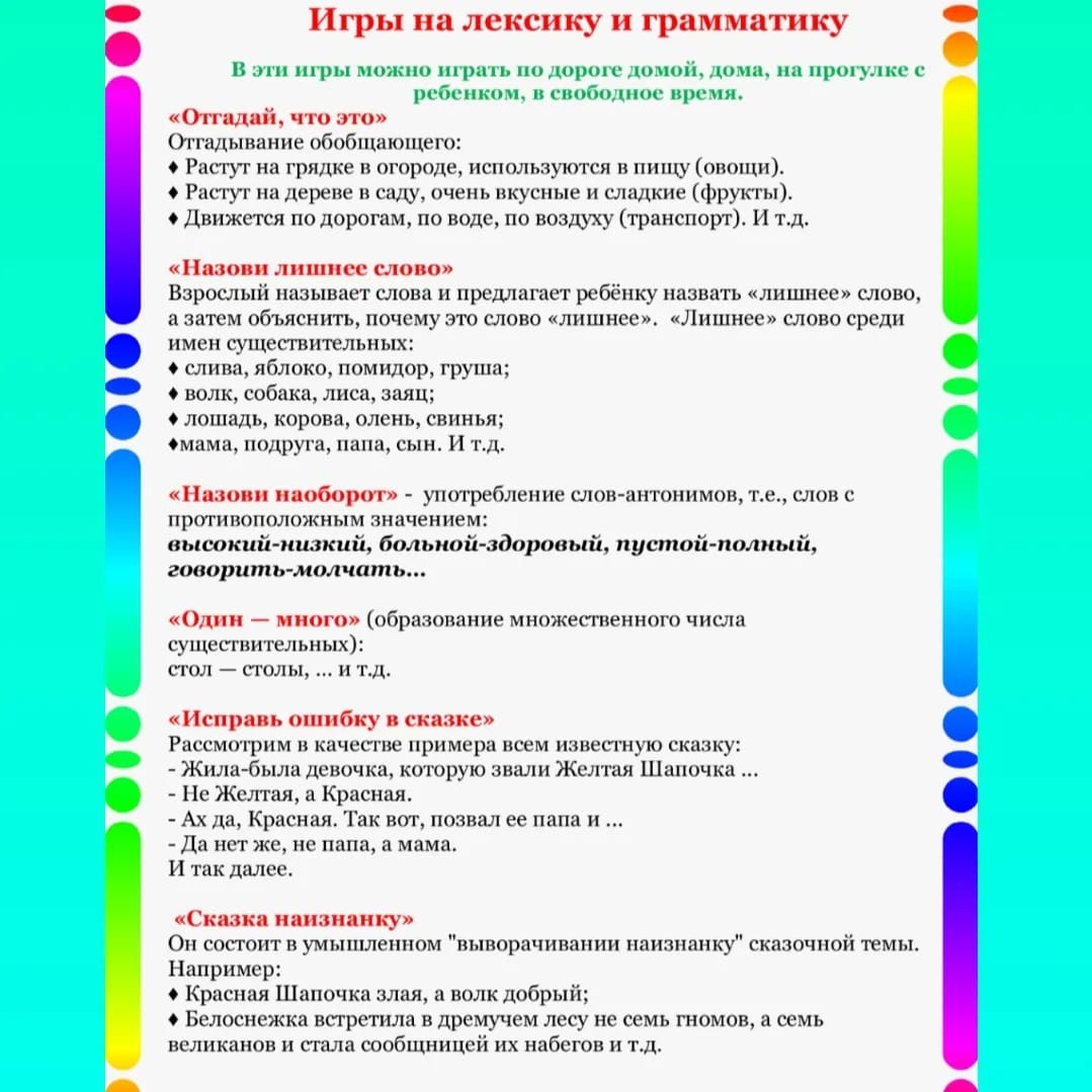 Логопедическая работа многогранна по содержанию. Она включает в себя развитие и коррекцию всех компонентов языковой системы: лексики, грамматики, слоговой структуры, фонетических нарушений. При развитии речи дошкольников и коррекции ее недоразвития на одно из ведущих мест выходит формирование лексико-грамматических навыков. В публикации представлены игры на развитие лексики и грамматики.